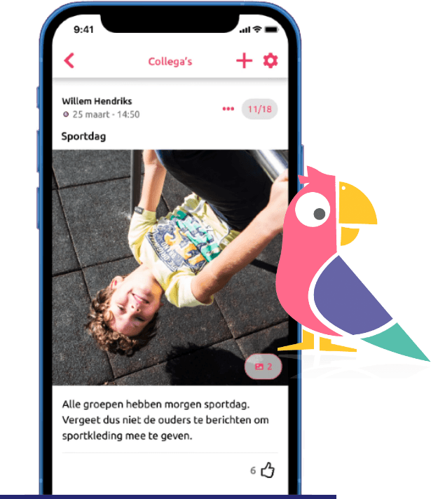 Met grote regelmaat houden we ouders op de hoogte via de Parro App. Een handige app voor praktische, actuele zaken, zoals activiteiten of absenties.